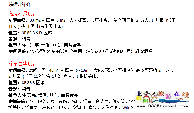 注:6月19日房?jī)r(jià)(含雙早):高級(jí)海景房 1500元 尊享豪華房 1950元 6月20日房?jī)r(jià)(含雙早):高級(jí)海景房 1650元 尊享豪華房 2250元 6月24日房?jī)r(jià)(含雙早):高級(jí)海景房 1550元 尊享豪華房 2080元 6月25-26日日房?jī)r(jià)(含雙早):高級(jí)海景房 2250元 尊享豪華房 3000元 敬請(qǐng)垂詢:13785079044 18633570222 15703350808 | ||||